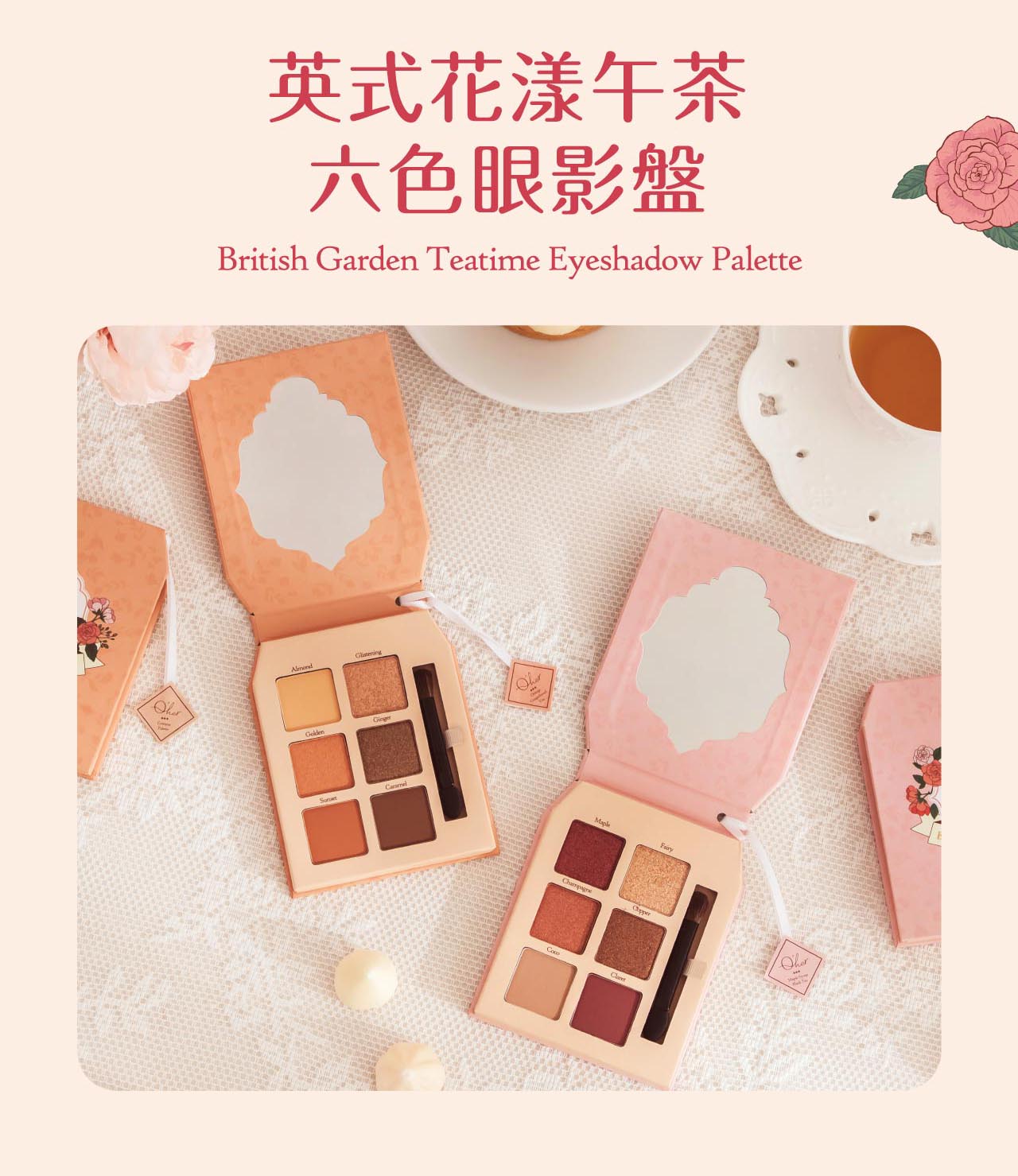 午茶眼影盤6色x1(兩款任選)+限定款閃耀光透唇蜜x1+花漾小方巾x1